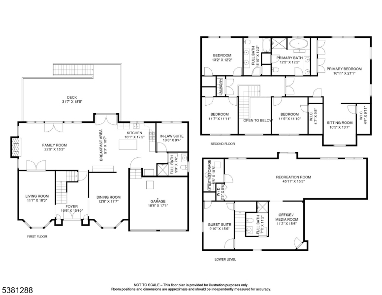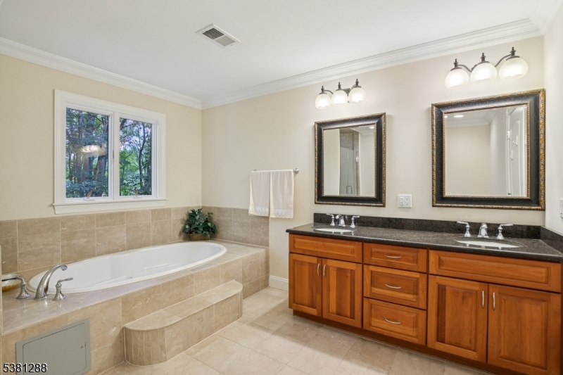 This custom built center hall Colonial built in 2009 boasts 5 bedrooms, 4 full baths & an office, approximately 5000 sq ft. of living space, & features a huge wooded lot! Step into the grand 2-story entrance hall & be greeted by gleaming hardwood floors & tons of natural light. Main level offers ideal floor plan; an enormous family room w/ gas fireplace totally open to gourmet kitchen with custom cherry cabinets & top of the line Thermador stainless steel appliances, formal dining room w/ chandelier, office/guest bedroom & full bath. Large mahogany deck overlooks the private beautiful wooded property. The 2nd level has double doors open to Luxurious primary suite w/ sitting room & 3 closets, a spa-like bath w/ Jacuzzi, shower & double sinks, & 3 very spacious bedrooms, another full bath & laundry. Downstairs, finished walkout basement includes a guest bedroom, full bath, as well as a huge rec room which is perfect for living space/entertaining. Lower level can be used as in-law or guest suite! Hookups available to add wet bar & 2nd laundry in basement. This home also features easy 1st floor access to attached 2 car garage, Anderson windows/french doors throughout, 3 zones central AC & heat, security system, french drains, newer septic & utilities. Chatham offers top rated schools & Bus service provided up to high school. this home is close to all major highways & train/bus direct to NYC. Low property taxes! Do not need flood insurance, as home is not located in a flood zone!