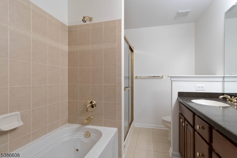 This Princeton model townhome in The Forges offers spacious, light-filled living with vaulted ceilings and an open floor plan. Kitchen features granite counters, stainless steel appliances, wood cabinetry, ample storage, and a separate eat-in area. Living room is highlighted by a gas fireplace and soaring ceilings with large windows on multiple exposures. A deck off the dining room offers the perfect spot for entertaining or quiet enjoyment with amazing views from its top-of-the-hill location. Upstairs, the primary suite features two closets, one of which is a spacious walk-in closet, and a bath equipped with both a shower and a soaking tub. The laundry is conveniently located on the second floor, near the bedrooms, and also features a utility sink. Guest bedrooms share a Jack-and-Jill bath. Finished lower level features high ceilings, full-sized windows, and a walk-out slider to the patio, making it ideal for a recreation room, home office, or gym. A highly sought-after community in Denville, renowned for its exceptional amenities and prime location. Residents enjoy a clubhouse, fitness center, pool, and tennis courts, all of which are accompanied by landscaping and snow removal services. Conveniently located just off RT 10, the neighborhood is close to shopping, restaurants, schools, and parks, with easy access to major highways and public transit. Downtown Denville offers a diverse mix of shops, dining options, and community events, making it an ideal place to call home.