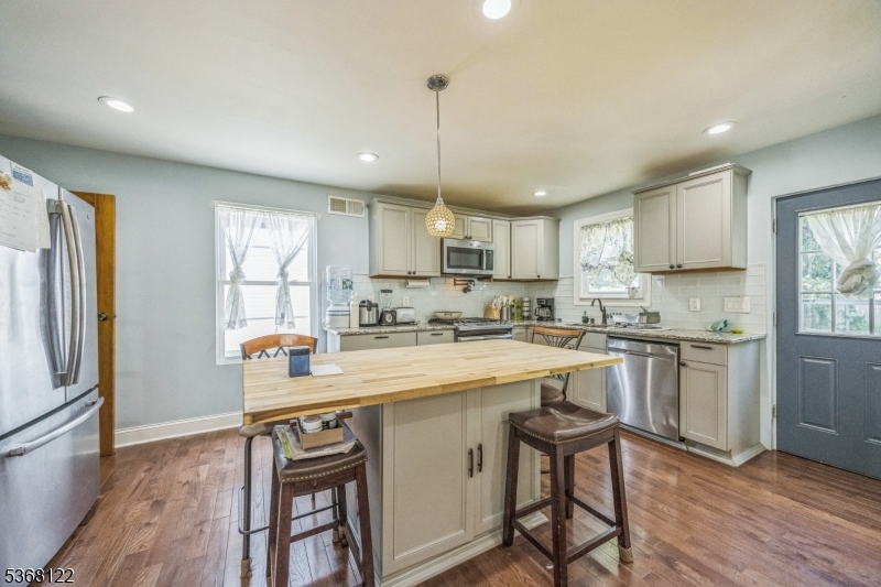 Step into this beautifully upgraded home featuring 3 generous bedrooms and 2 full bathrooms, designed for both comfort and functionality. This property showcases stunning hardwood floors, a sleek kitchen with a center island, recessed lighting, and top-quality appliances including a dishwasher, microwave, range/oven, and refrigerator. Stay comfortable year-round with central air and efficient baseboard heating. Downstairs, a finished office in the basement offers the perfect private workspace, complete with a thoughtfully designed laundry area. This home delivers style, practicality, and modern convenience in every corner.