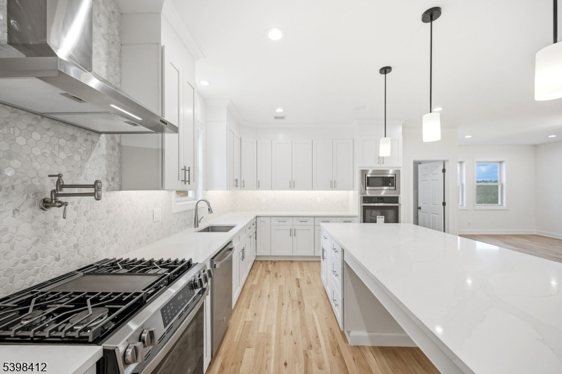 BRAND NEW BUILD, offering 5 spacious bedrooms and 4 Full baths, including a versatile first-floor bedroom option. Step inside through the welcoming two-story foyer, where a graceful staircase sets the tone for timeless design. At the heart of the home lies a chef's kitchen, thoughtfully designed with high-end appliances, a kettle faucet, an extended center island, and refined finishes. A butler's wet bar, Two large walk-in pantries with custom shelving. The kitchen flows seamlessly into an expansive great room with a fireplace, while sliders open to a full deck perfect for indoor-outdoor living. The main floor also features: an Oversized formal dining room ideal for gatherings. Parlor with a wet bar and a wine fridge for entertaining versatility. Bonus first-floor bedroom with full bath, plus an additional 2 full baths upstairs, retreat to the serene primary suite, complete with a spa-inspired bath featuring a soaking tub, oversized shower, dual vanities, custom walk-in closets, and a cozy gas fireplace. Three additional bedrooms provide comfort and style. The finished basement with full bath offers endless possibilities, whether for recreation, media, or guests. Enjoy landscaped grounds and a 3-car garage. Located in Lower West Milford, Public Sewer, just one hour from NYC, this elegant residence combines modern luxury with timeless appeal.Schedule your private showing today and experience the lifestyle you deserve.